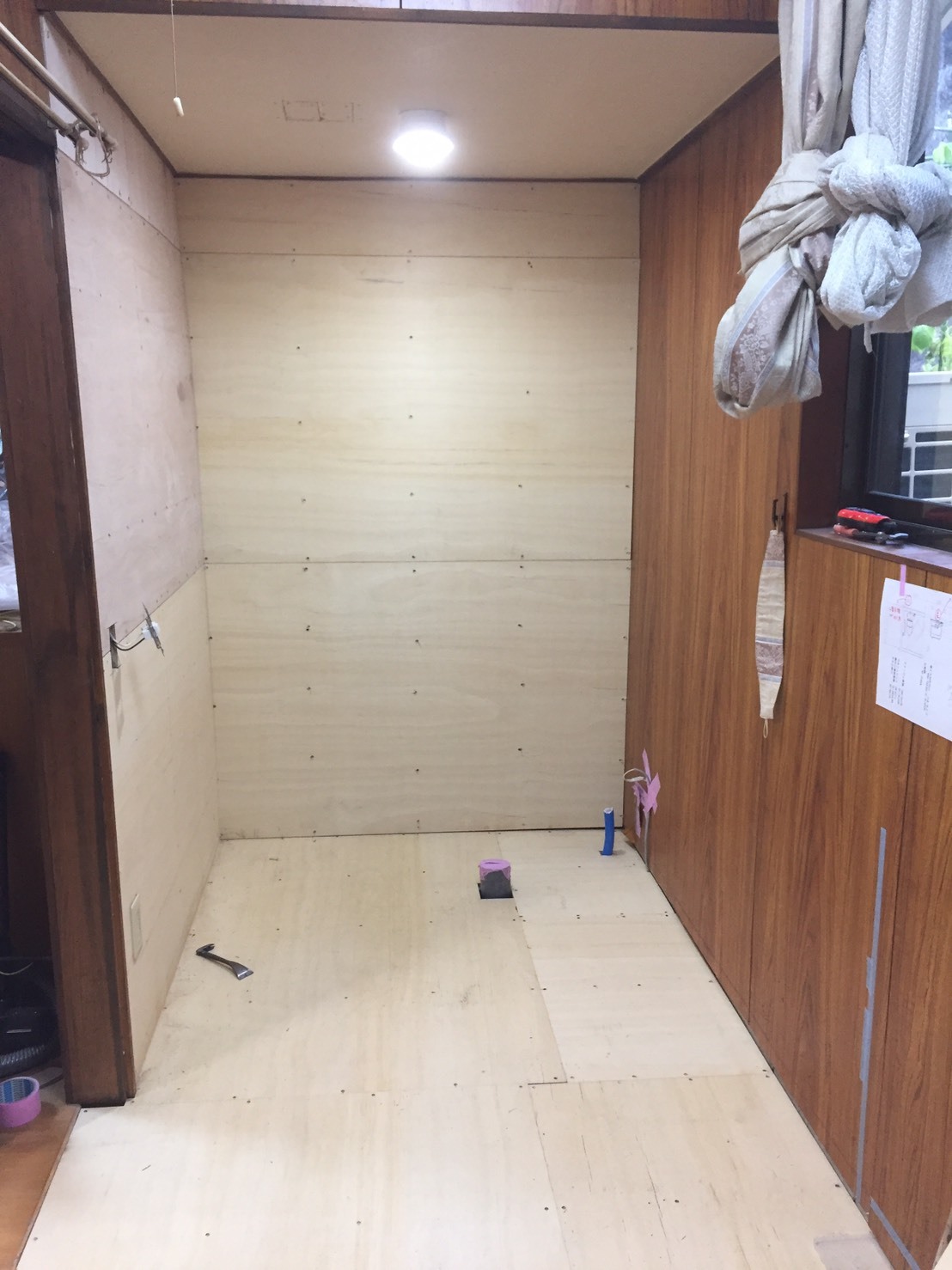 戸建て洗面トイレ新設工事 3日目 2017.01.17 cat: 脱衣場 洗面 トイレ リフォーム 戸建てのトイレ室新設 洗面台新設工事の床下断熱 手すりの下地工事画像です床はCFシート クロス貼りを行い器具付けを行っていきます Share ツイート LINE