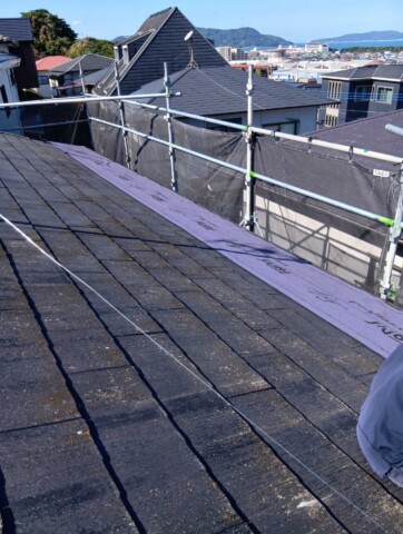 次に行うのが「ルーフィング施工」。
