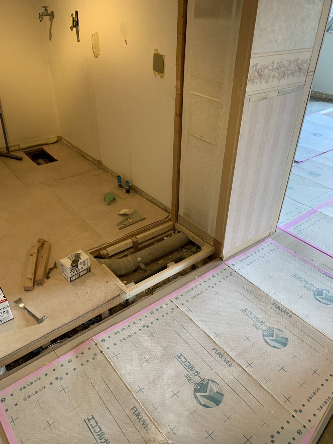 フロアL45張替え 建具取り換え 水回り 脱衣場増改築がメインの現場となります