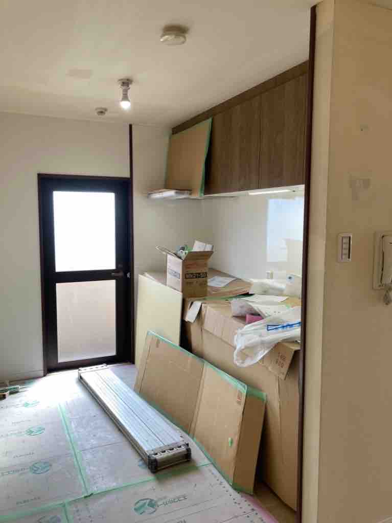 笹丘マンションリフォーム続き 2020.10.05 cat: マンションリフォーム, リフォーム・リノベーション工事進行BLOG キッチン組み立て施工完了 収納 建具関係もおさまり もう少しかかりますが見えてきました 床養生しておりますが床も上張りしています Share ツイート LINE