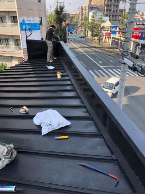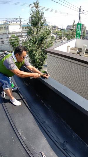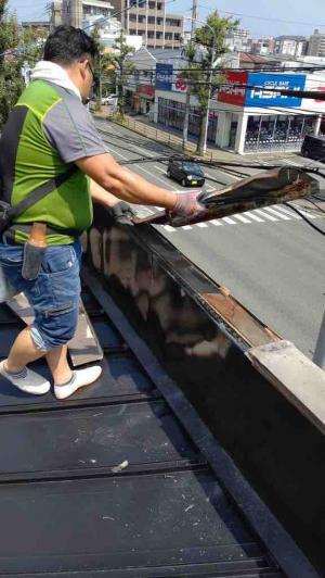 貸し事務所板金工事 2020.09.09 cat: リフォーム・リノベーション工事進行BLOG 貸し事務所 笠木の板金やり変えを行いました 雨漏れの原因でした 既存笠木 めくり 新規板金笠木 板金屋根も古いですので瓦棒にも腐食穴あき箇所が何箇所かありましたので変性シーリング充填しときました 応急ですが ご依頼有難う御座いました Share ツイート LINE