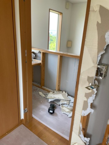 宇美町戸建てトイレ新設続き 2021.06.11 cat: リフォーム・リノベーション工事進行BLOG 配管の逃げが終わり 内部造作中です 建具移設や壁を立てて参ります お客様より飲み物頂きました有難うございます Share ツイート LINE