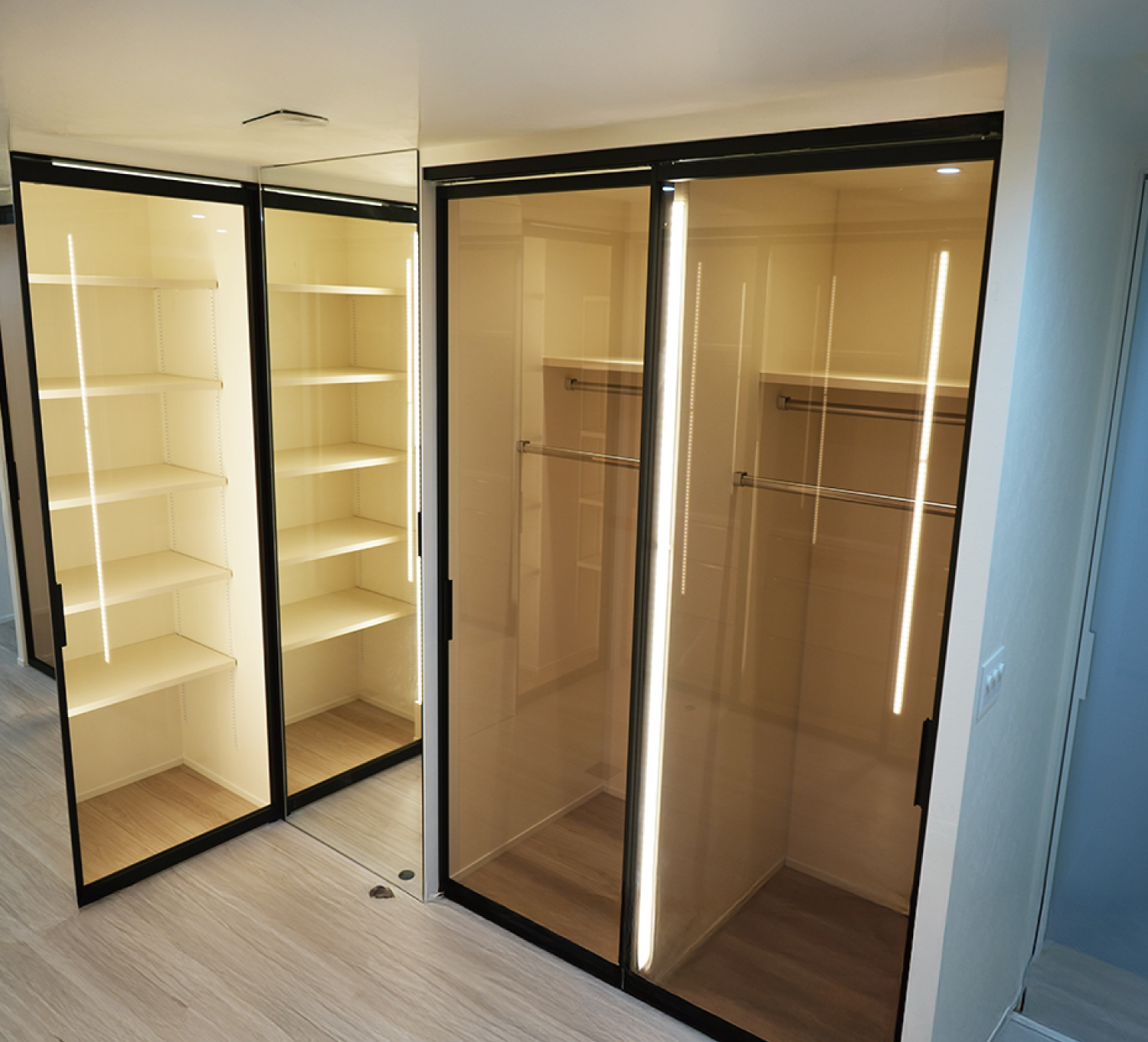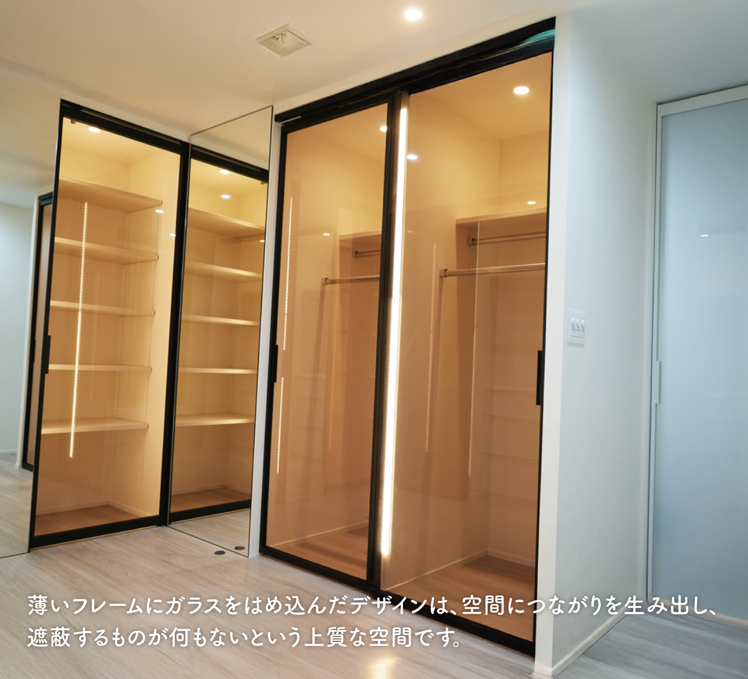 ご期待に応えて、アパレルショップのショーケースのようなスタイリッシュな空間を自社大工と共に実現しました!!