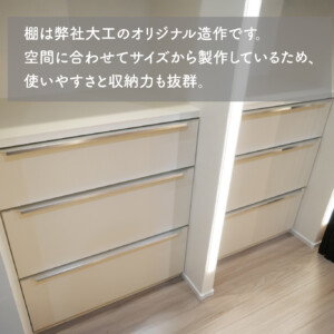 空間に合わせてサイズから製作しているため、使いやすさと収納力も抜群。