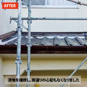 今回、劣化した古い漆喰を取り除き、新しく漆喰を詰め直す補修を行いました。