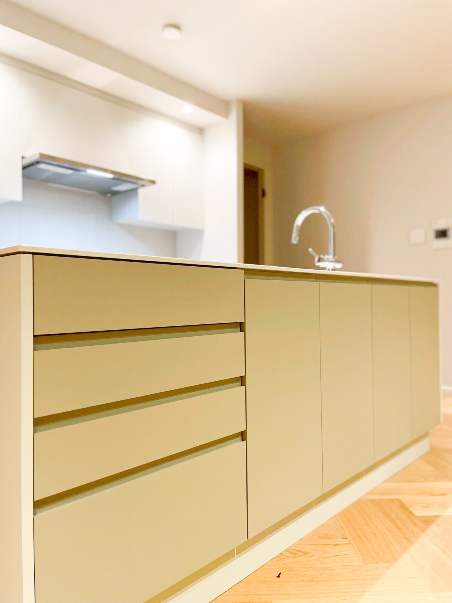 生活感を極力抑えた、美しいキッチン空間です。