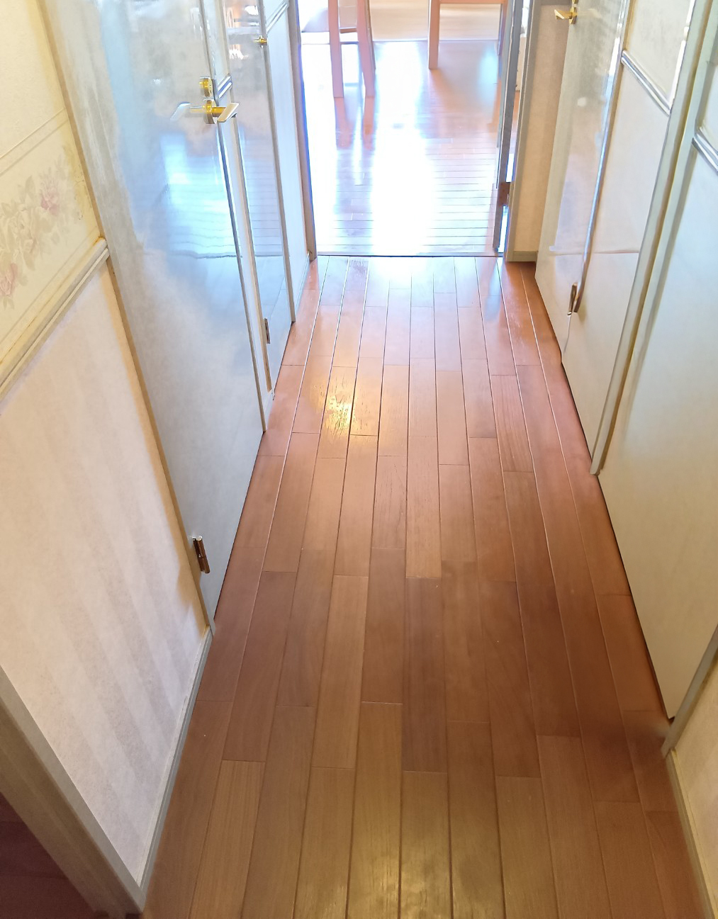 廊下やリビングの床は、パナソニック「べリティス ベースコートL45」に張替え。