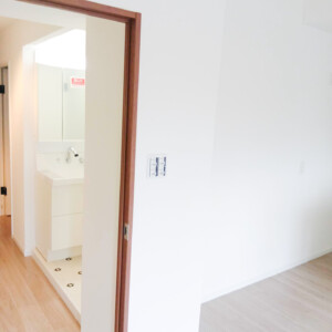 巾木など細部まで統一することで、すっきりとした仕上がりになっています。