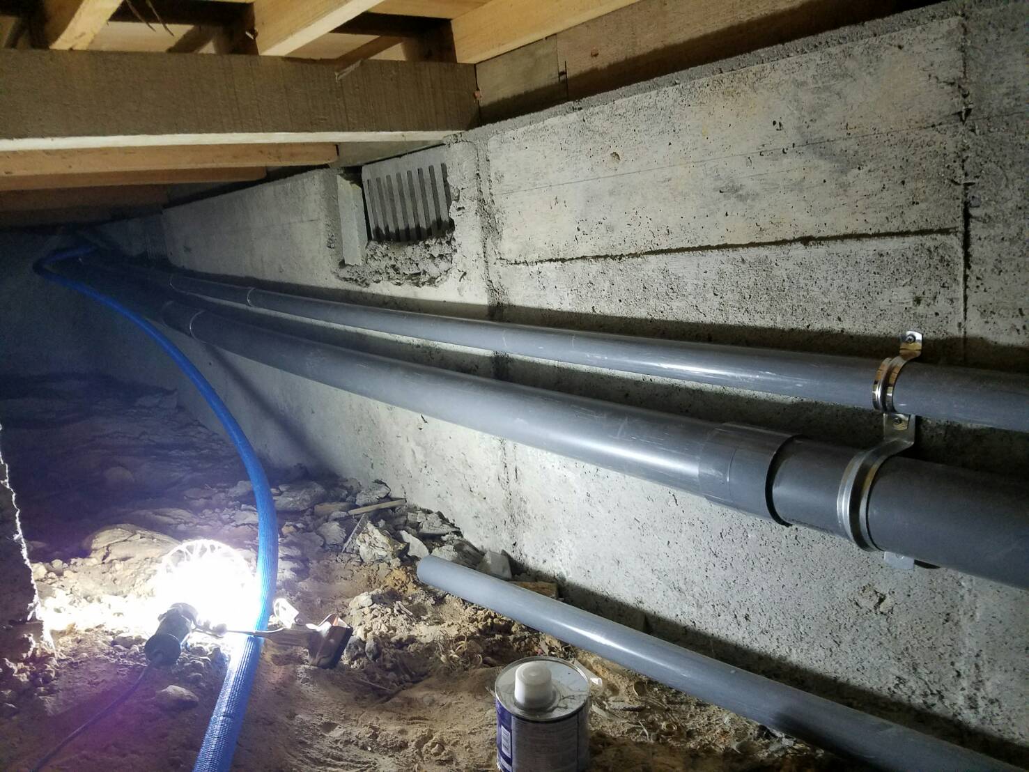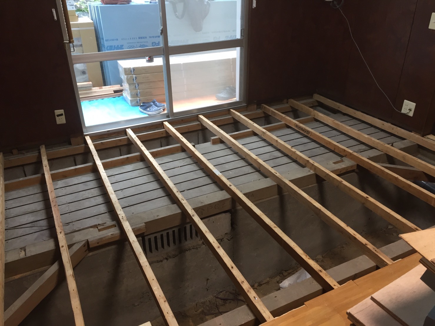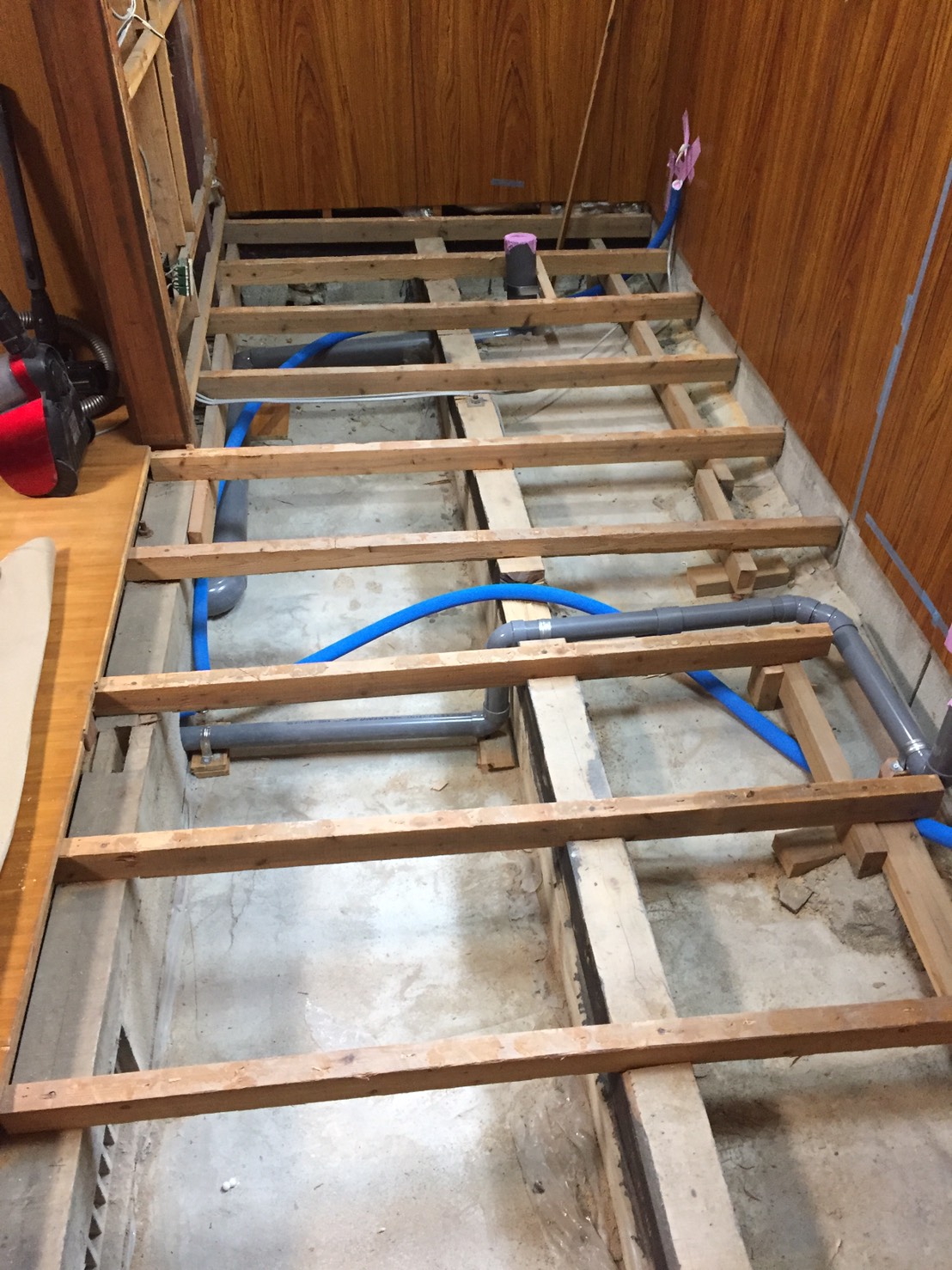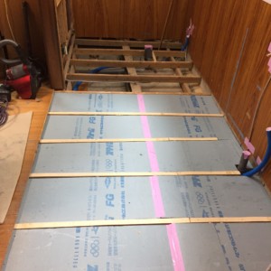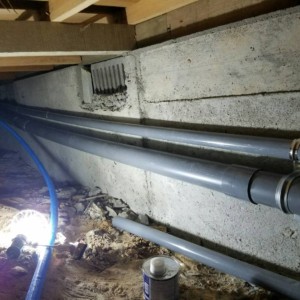 戸建ての床下断熱工事とトイレ洗面新設工事を行わせて頂きました、既設トイレ洗面より床下配管を分岐しました、また床下断熱材はスタイロフォームFGを採用させて頂きました