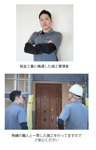 屋根カバー工法は、板金工事に精通した施工管理者と熟練の職人によって成り立ちます。