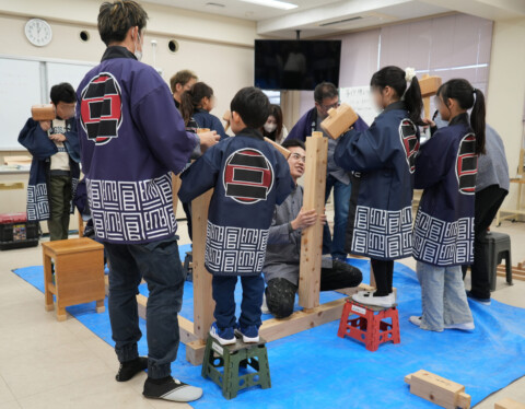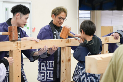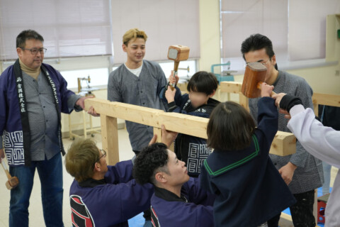 当社の現役大工と一緒に、実際に建てる棟上げ体験を通して、ものづくりの楽しさや大工の仕事を身近に感じてもらいました。