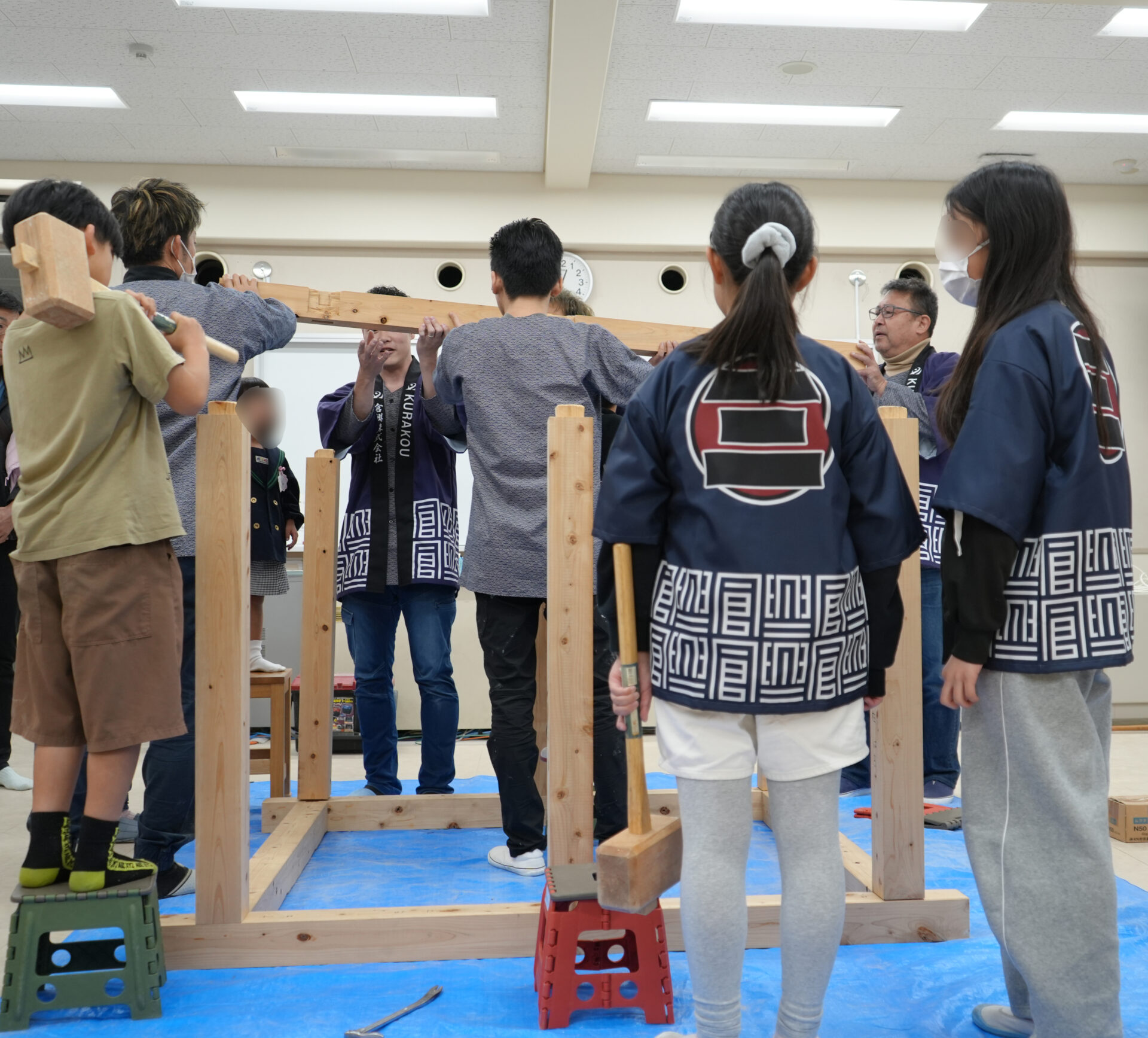 先日開催された「天神山フェスタ」にて、子ども棟上げ体験を行いました。